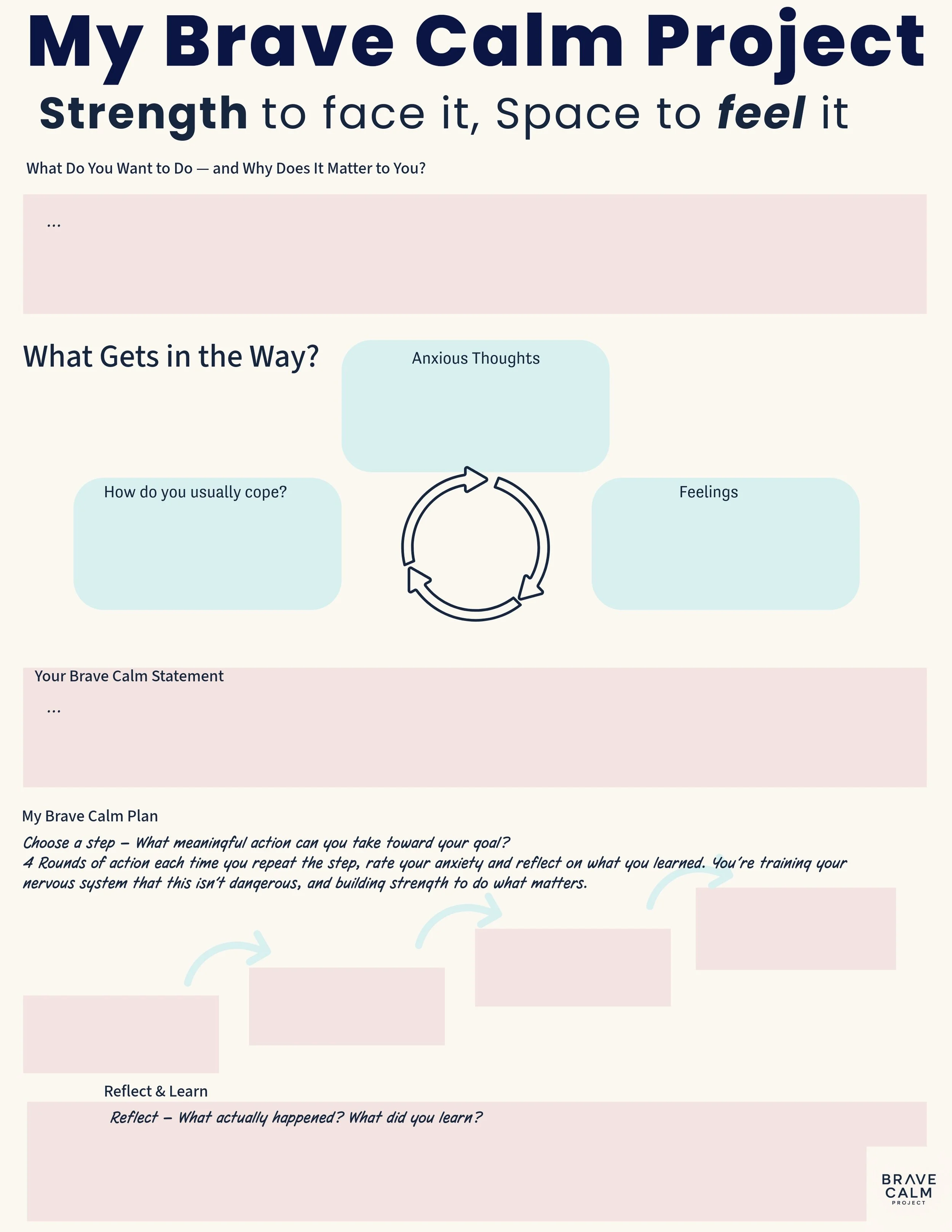 This free, printable worksheet helps you create your own Brave Calm Project β a meaningful goal you want to move toward, even if anxiety shows up along the way.